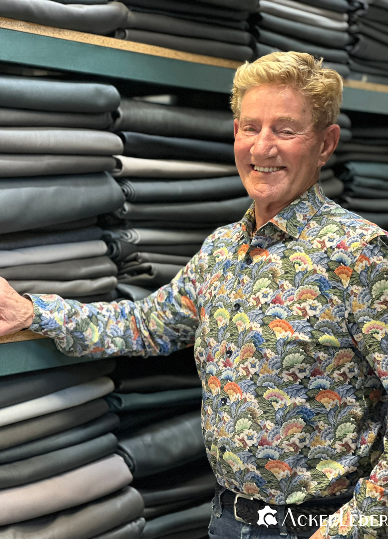 Gegründet in Pirmasens, einer Stadt mit tiefen Wurzeln in der Schuh- und Lederindustrie, begann die Karl Acker Leder GmbH als kleines Unternehmen, das sich auf den Handel mit Lederresten spezialisierte. Karl, dessen Leben eine Geschichte von Entschlossenheit und Hingabe ist, baute das Unternehmen mit harter Arbeit und der Überzeugung auf, dass aus jedem Stück Leder etwas Wertvolles geschaffen werden kann. Trotz Herausforderungen, darunter die Trennung von einem Geschäftspartner und die Neuausrichtung des Unternehmens, blieb Karl seiner Vision treu und führte die Firma zu neuem Erfolg. Stets an seiner Seite seit seinem 16. Lebensjahr war sein Sohn und seit 2004 der Geschäftsführer der Firma, Steffen Acker.